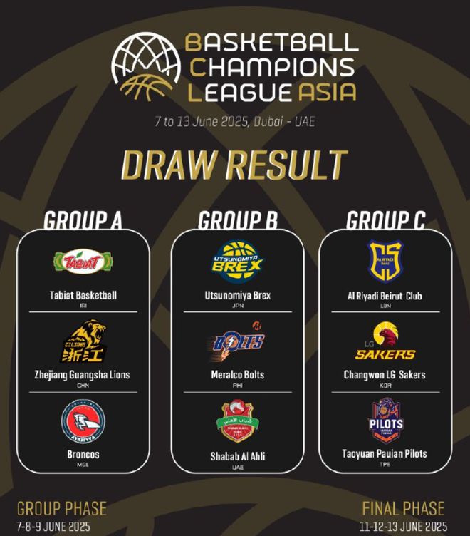 男篮亚冠联赛分组出炉:浙江广厦与蒙古&伊朗球队同组